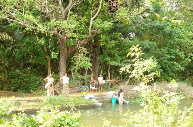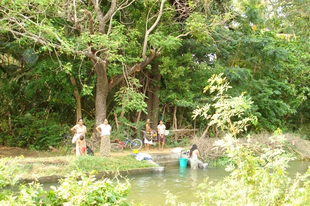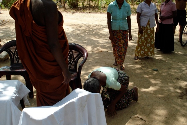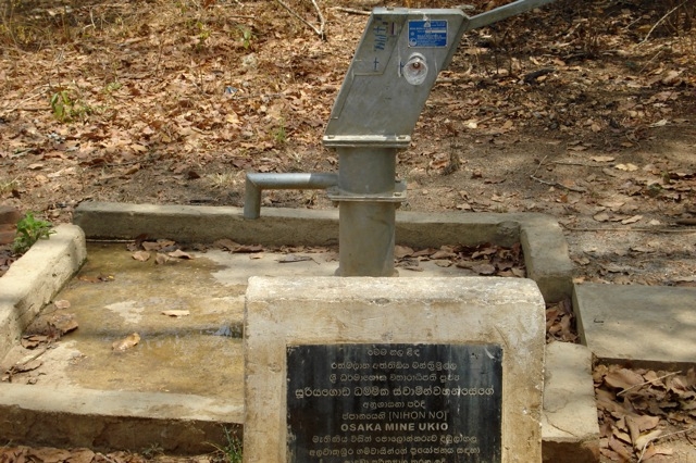 - 「今、一番必要とするのは水。水に困っている場所がボロンナルワ地方に有ります。これまでだれも目を向けない困窮している北部の村です。」と、ダンミカ長老に促され2009年に下見調査に訪れた。そこは、シンハラ王朝の首都があった仏教都市ボロンナルワから更に35キロ北部、10~12世紀に全盛期を迎えたあと13世紀には衰退した嘗ての首都ボロンナルワが1900年までジャングルで埋もれていた。遺跡群が発見され、現在はアジア有数の大遺跡群がある場所として名を世界にとどろかせている。ここは、全盛期時代、その頃からも既に水が必要としてつくられたパラ‐マクラマ・サムドラと呼ばれる巨大な人口の貯水池があり、そのほとりに市街が発達して現存している。ドライゾーンと呼ばれる乾いた地に命の水を確保するために作られた池の水は、今回の井戸候補地だったダンブラ‐ガラ村に届かない。現場はそこから北へ35キロ・・貯水池からの流れは、川となり車窓からは、間を置いて男女が沐浴、皿洗い、洗濯など様々な風景が見られる。2009年に視察したが、戦争で荒廃した北部では、数カ所の井戸の現状は大変厳しく水の出ない井戸が多くあった。巡回し井戸不足の現状を知り、日照りが続くと渇水状態になり井戸から水が汲めない、草も木々も枯れ辺りは、カラカラの状態で何より<水>の供給に困窮していた現状を3年前に下見したことを思い出しながら現地に赴いた。