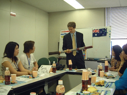 アメリカ青年二−ルさんは身長188センチ、おばあさまはイタリア人という親しみやすい明るい笑顔が印象の若者でした。流暢な日本語(日本語1級)に驚きました。