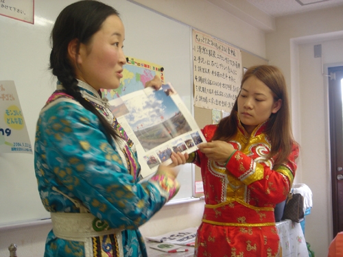 今回のゲストは、モンゴルからの留学生、ソボド(真珠の意味)さんと、ウランチチゴ(赤い花の意味)さん。