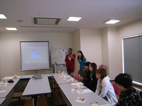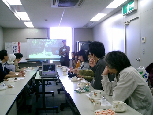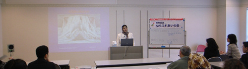 エリックさんは、日本語学校を終え、現在は大阪で電子工学を専門に学ぶ傍ら、母国を紹介する意欲も満々。「ちょっと緊張しています。」と始まり、一段と上手くなった日本語でプレゼン、途中、国歌の披露もあり興味深深の2時間だった。