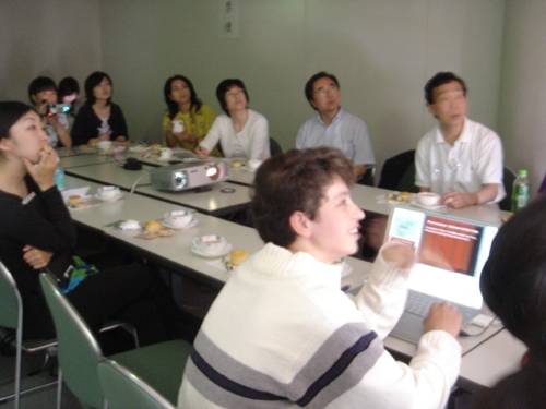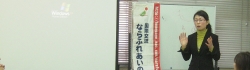 生まれたときから日本に住んでいたが、 懐かしさを思い出す韓国生活でのご自身の体験を通し、参加者の質疑を受けながら応答。清楚な印象で静かな口調、韓国人の父が、大きな声で話すのは、いつも恥ずかしいくらいだった・・・など、そんなお話を例え、韓国語の発音には日本語では、同じシラブルでも詰まって発音し、違った意味になる語もあり、強く発するため、聞く方は熱情的に聞こえる。平凡な伝達の中にも発音の起伏を感じるなど韓国語は非常に興味深くおもしろい。