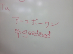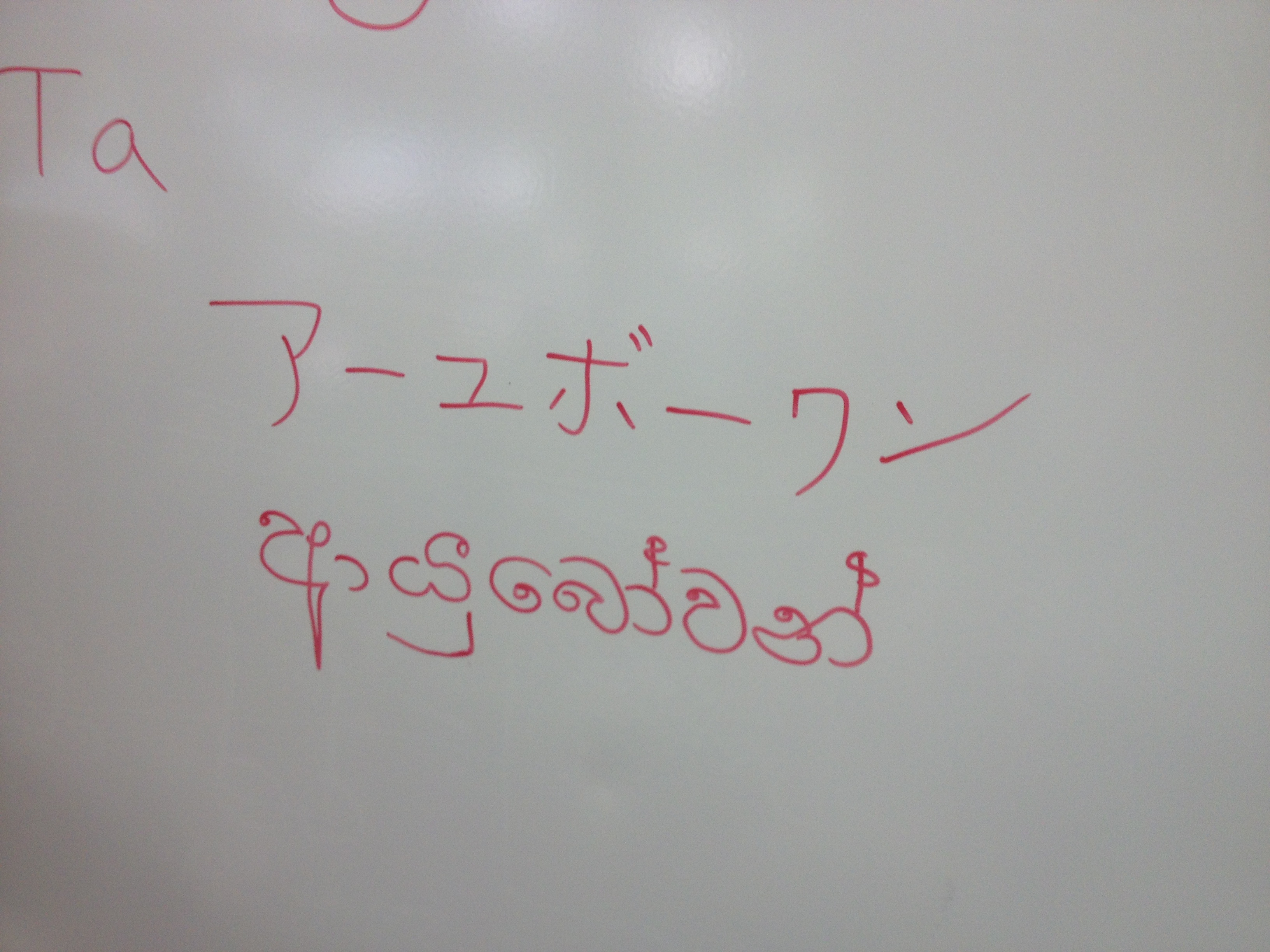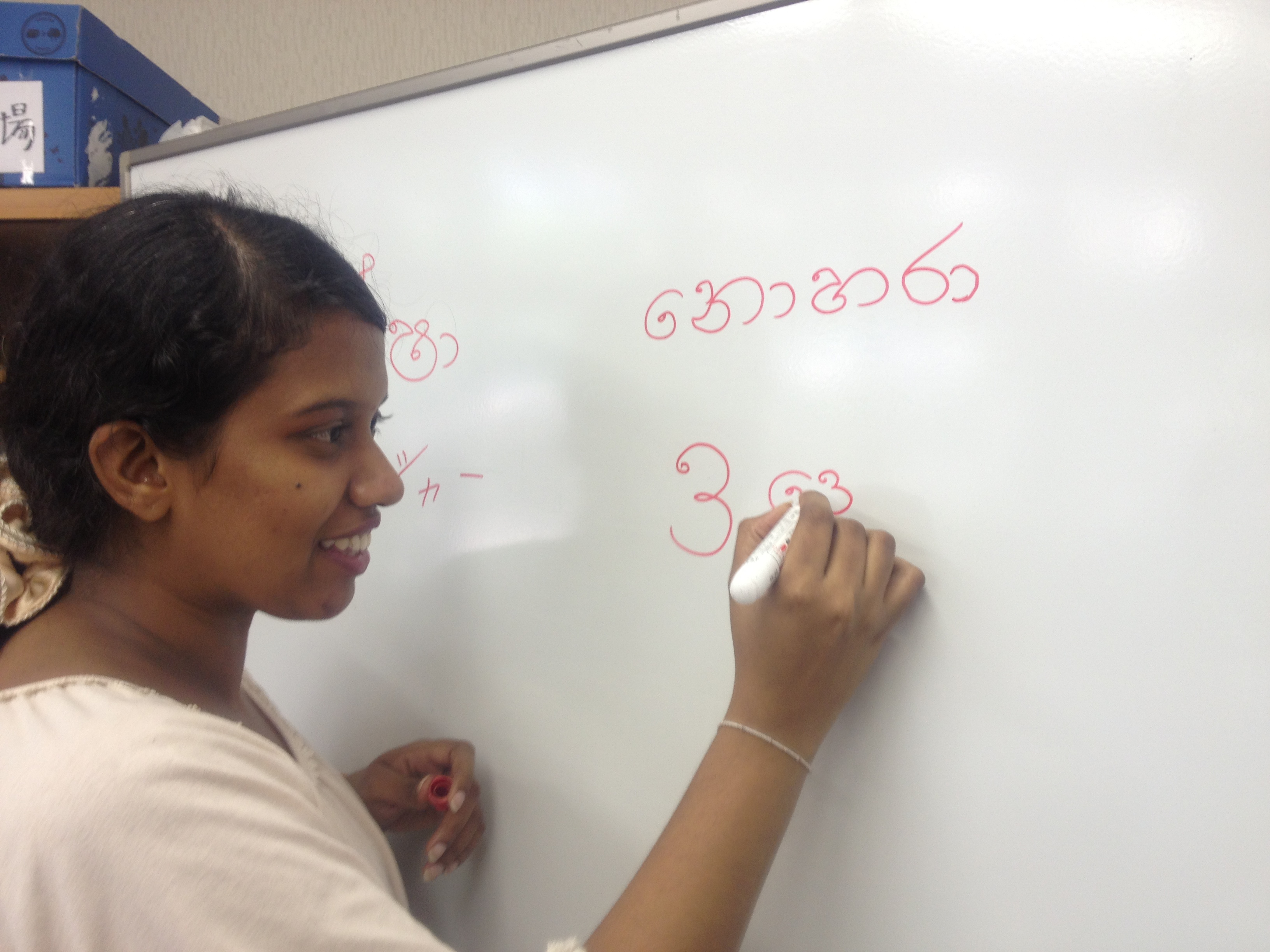 ホワイトボードに、シンハラ語を書いてもらいましたが、それはそれはかわいい文字でした。