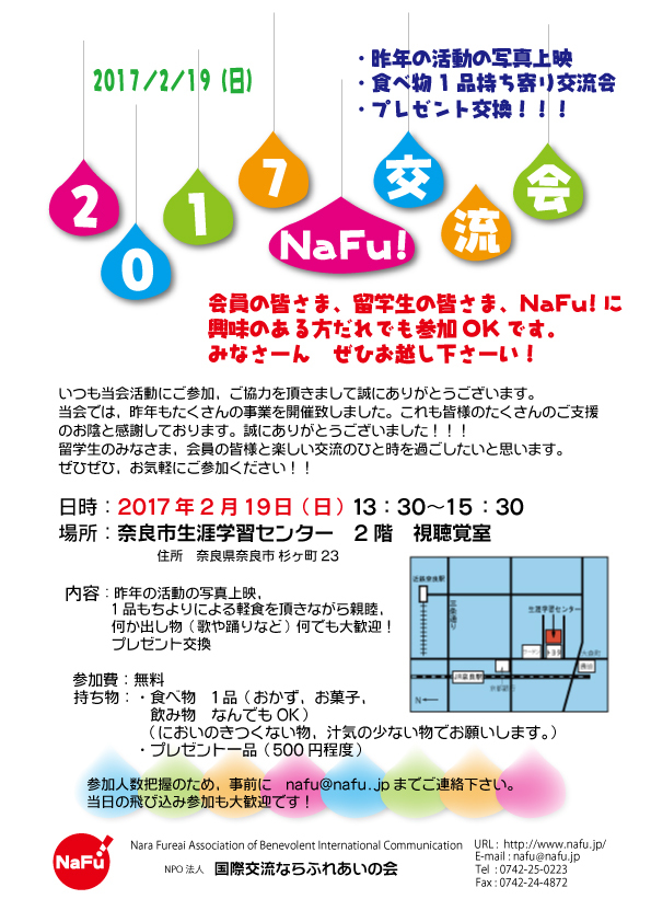 これまでの活動2017 2017.1〜 メール会員にご登録いただくと、これからのイベント情報や予定をメールにてお知らせします。メール会員のお申し込みはメール会員申し込み これまでの活動(1年ごとの活動はこちら) これまでの活動2025 これまでの活動2024 これまでの活動2023 これまでの活動2022 これまでの活動2021 これまでの活動2020 これまでの活動2019 これまでの活動2018 これまでの活動2017 これまでの活動2016 これまでの活動2015 これまでの活動2014 これまでの活動2013 これまでの活動2012 これまでの活動2011 これまでの活動2010 これまでの活動2009 これまでの活動2008 これまでの活動2007 これまでの活動2006 これまでの活動2005 これまでの活動2004 これまでの活動2003 これまでの活動2002 これまでの活動2001 各イベントごとの歩み 各イベントごとの歩み(ホーム) サマーキャンプの歩み フィエスタメヒカナの歩み ふれあいTalkingの歩み ふれあいCookingの歩み ホームステイ受け入れ事業の歩み 海外スタディツアーの歩み