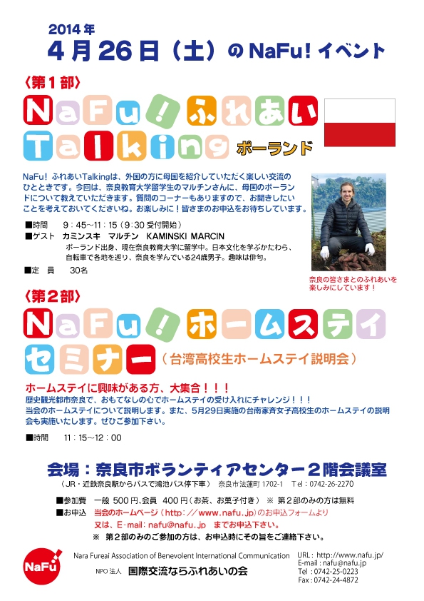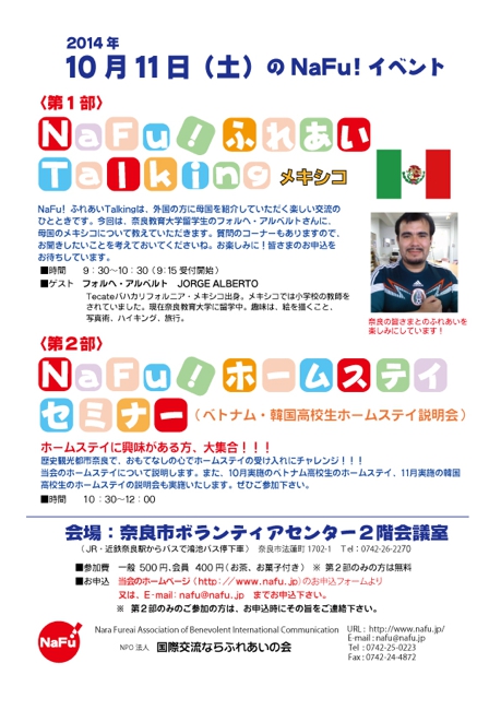 これまでの活動2014 2014.1〜 メール会員にご登録いただくと、これからのイベント情報や予定をメールにてお知らせします。メール会員のお申し込みはメール会員申し込み これまでの活動(1年ごとの活動はこちら) これまでの活動2025 これまでの活動2024 これまでの活動2023 これまでの活動2022 これまでの活動2021 これまでの活動2020 これまでの活動2019 これまでの活動2018 これまでの活動2017 これまでの活動2016 これまでの活動2015 これまでの活動2014 これまでの活動2013 これまでの活動2012 これまでの活動2011 これまでの活動2010 これまでの活動2009 これまでの活動2008 これまでの活動2007 これまでの活動2006 これまでの活動2005 これまでの活動2004 これまでの活動2003 これまでの活動2002 これまでの活動2001 各イベントごとの歩み 各イベントごとの歩み(ホーム) サマーキャンプの歩み フィエスタメヒカナの歩み ふれあいTalkingの歩み ふれあいCookingの歩み ホームステイ受け入れ事業の歩み 海外スタディツアーの歩み